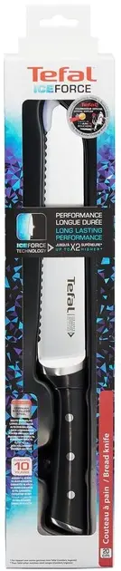 Ніж для хліба Tefal Ice Force, 20см, нержавіюча сталь, пластик, чорний