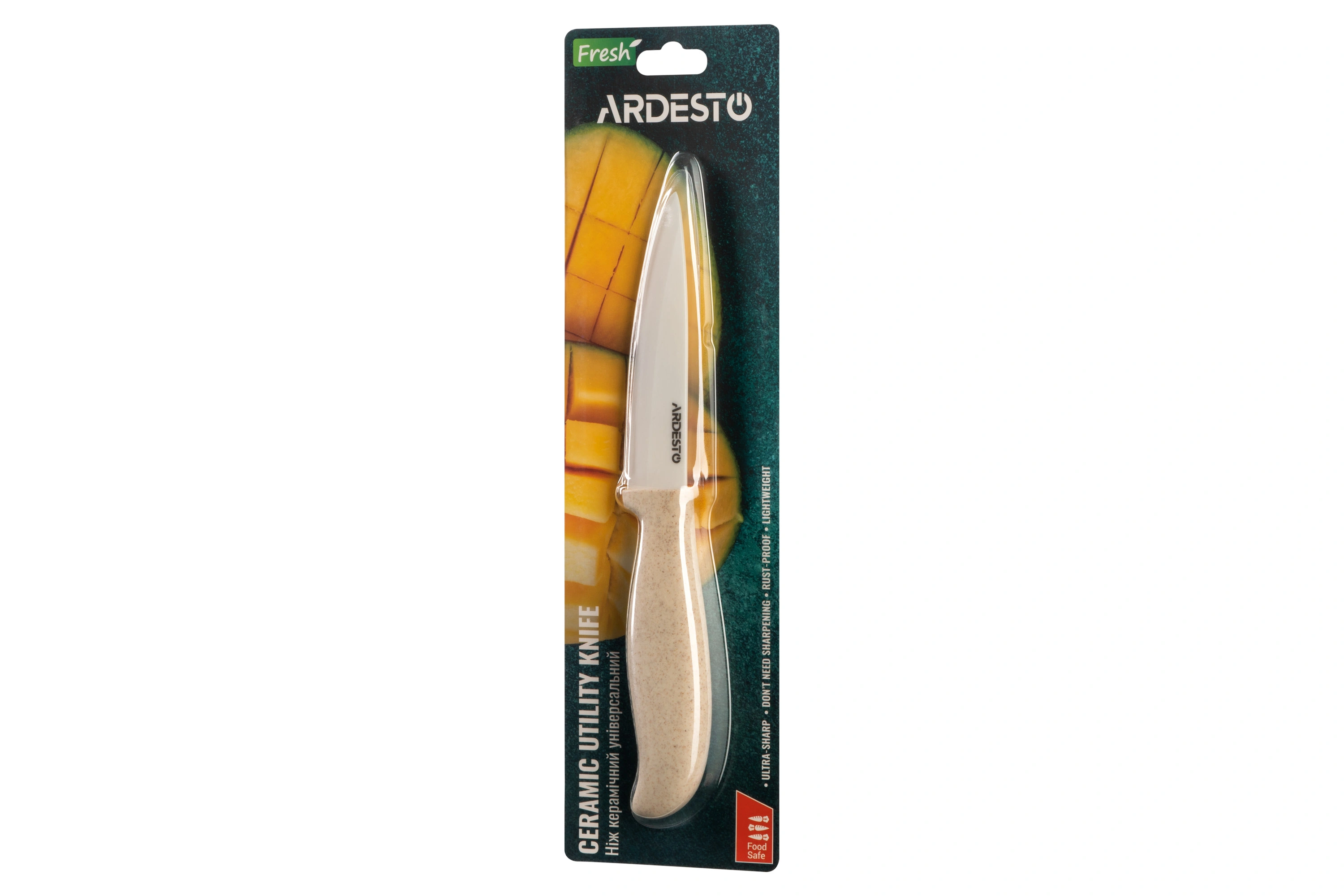 Ніж керамічний універсальний Ardesto Fresh, 10см, кераміка, пластик, бежевий