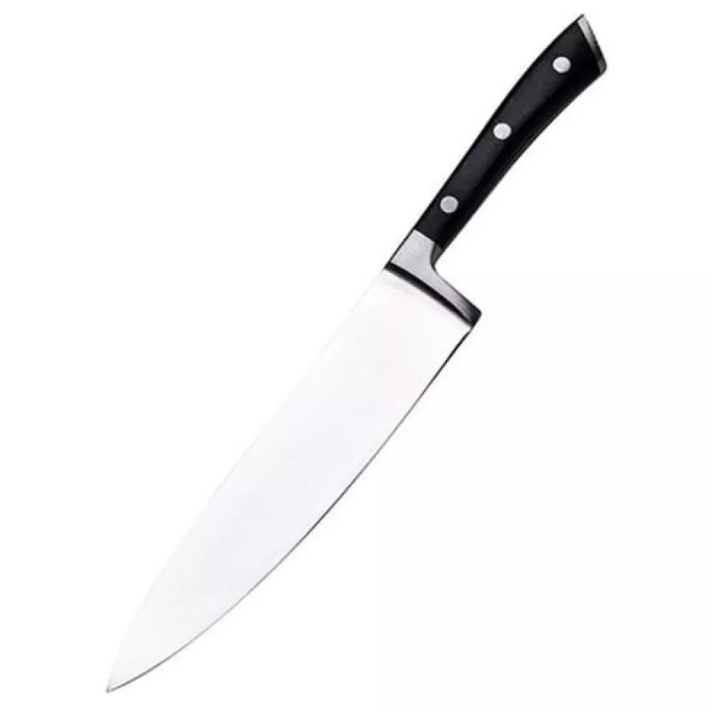 Ніж Bergner MasterPro Foodies collection виготовлений з нержавіючої сталі з вмістом хрому та вуглецю. Лезо стійке до корозії, легко заточується, при цьому надовго зберігаючи ідеальну гостроту. Ергономічна бакелітова ручка зручної форми на металевих заклепках. Вигнута ручка з упором під пальці перешкоджає ковзанню руки під час роботи з жирними продуктами. Серія кухонних ножів Bergner Master Pro Stuttgart легко впорається з будь-яким завданням.