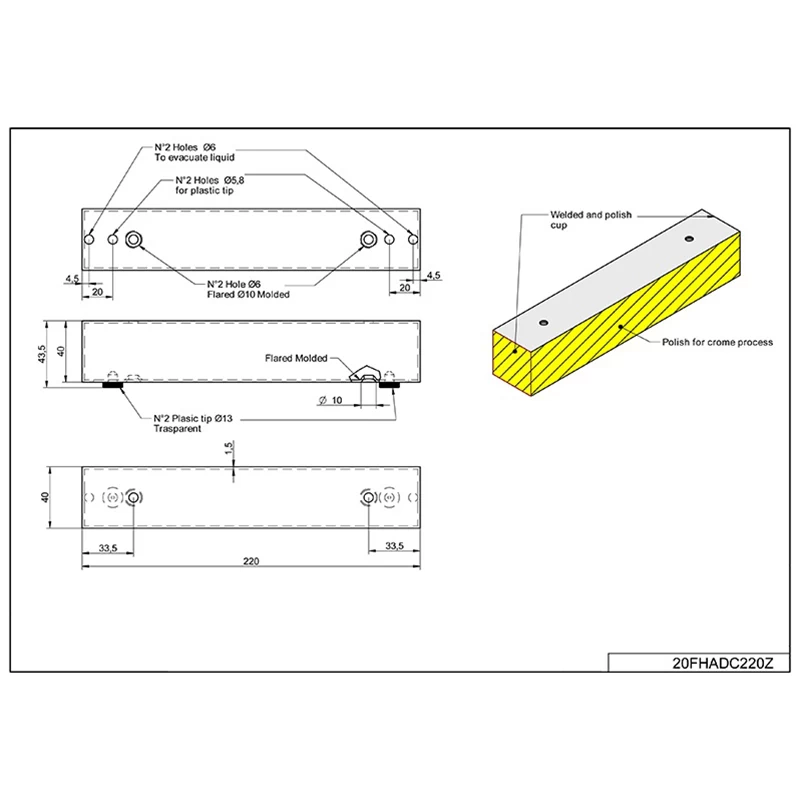 Ножка мебельная IPEA Hades 40 х 220 мм 20FHADC220Z Хром – современная и стильная опора, обеспечивающая надежность и эстетику мебельных конструкций.