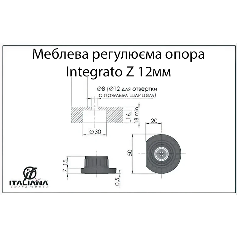 Ножка мебельная Италия Ferramenta Integrato Z для шкафов с регулировкой 12мм.
