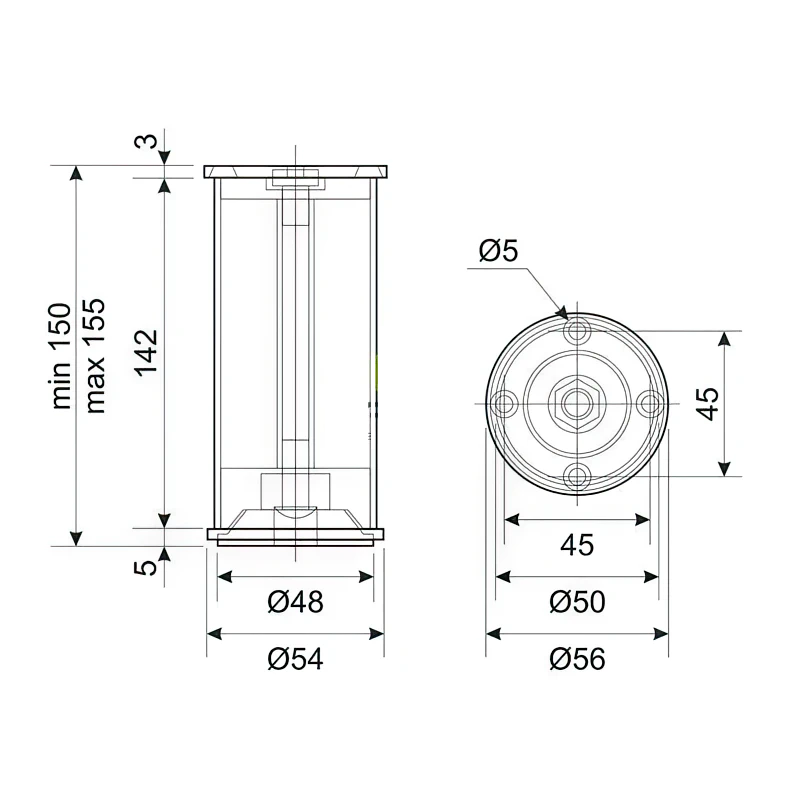 Ножка мебельная регулируемая DC DA11AL H-150мм Алюминий