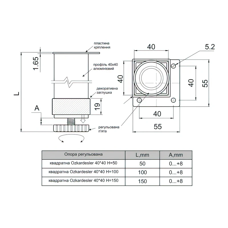 Ножка мебельная регулируемая DC KARE DUZ H-100 Белая