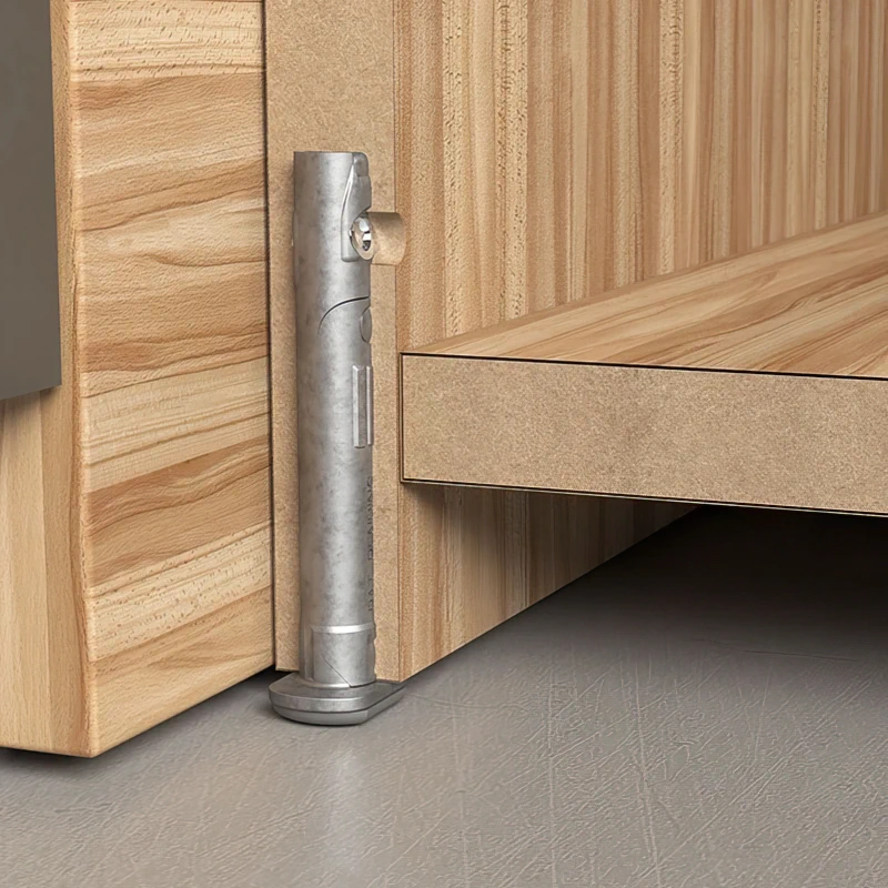 - Удобство регулировки: Регулировка высоты осуществляется через небольшое отверстие в боковине мебели под углом с помощью шестигранного ключа. Это позволяет производить настройку быстро и без повреждения пола или самой мебели.