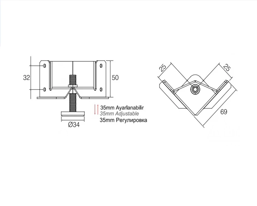 - Диапазон регулировки ножки, мм 35