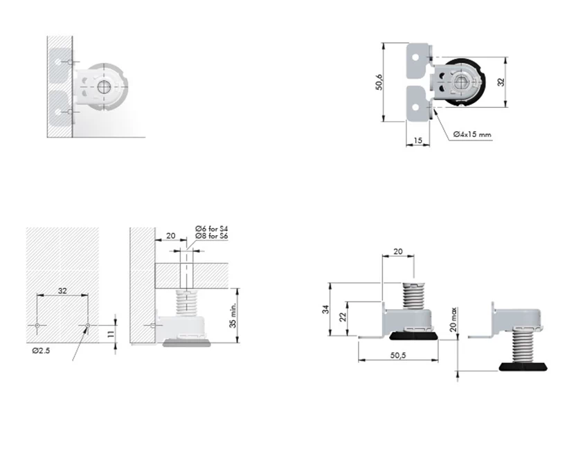 - Диапазон регулировки: до 20 мм, позволяя легко выравнивать мебель на неровных поверхностях.