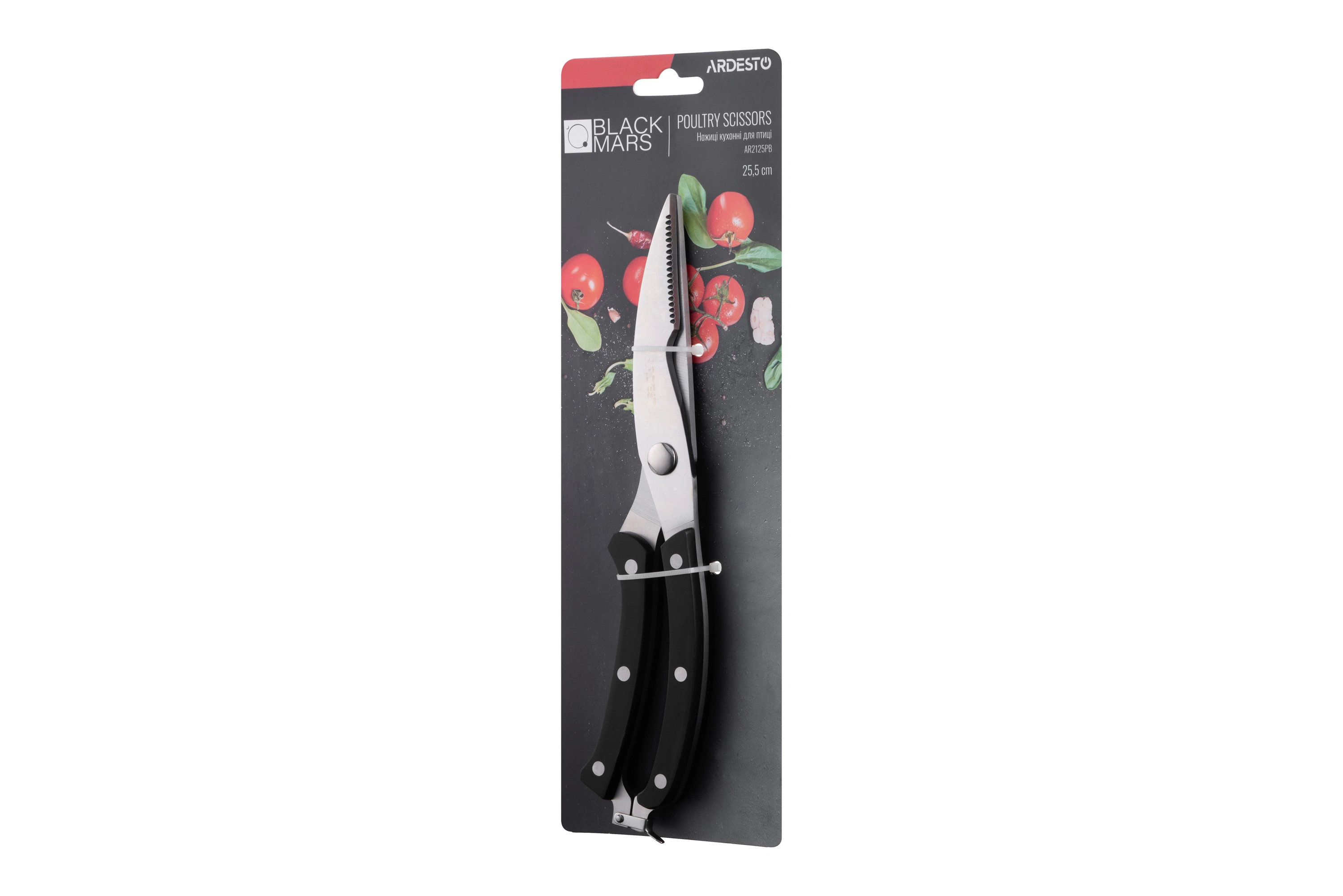 Ножиці кухонні для птиці Ardesto Black Mars, 25.5см, нержавіюча сталь, пластик, чорний
