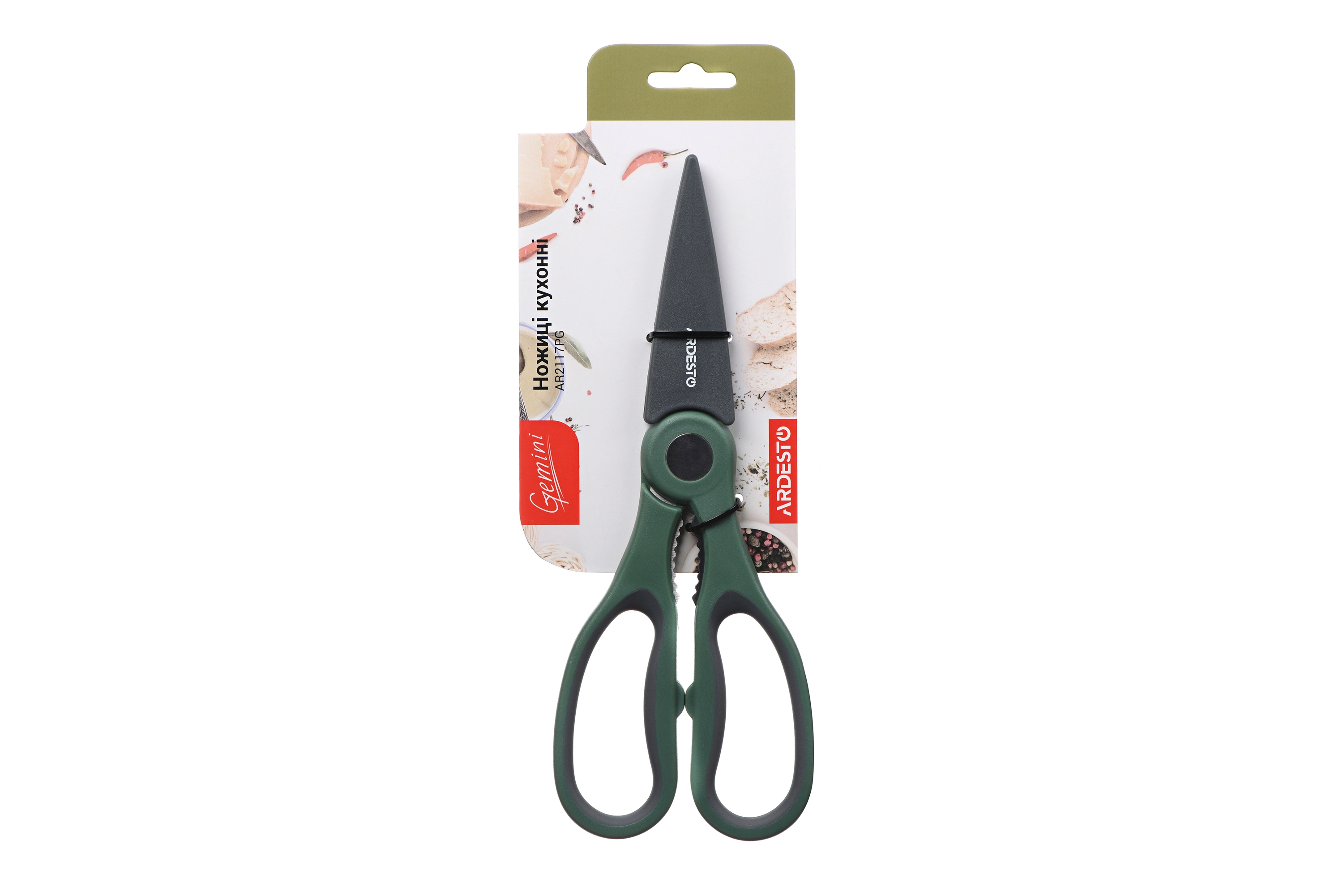 Ножиці кухонні з чохлом Ardesto Gemini, 22.3см, нержавіюча сталь, пластик, сіро-зелений