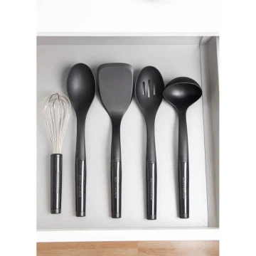 Комплектація: вінчик, ложка кухонна, ложка кухонна з прорізами, лопатка кухонна, ополоник, підставка.