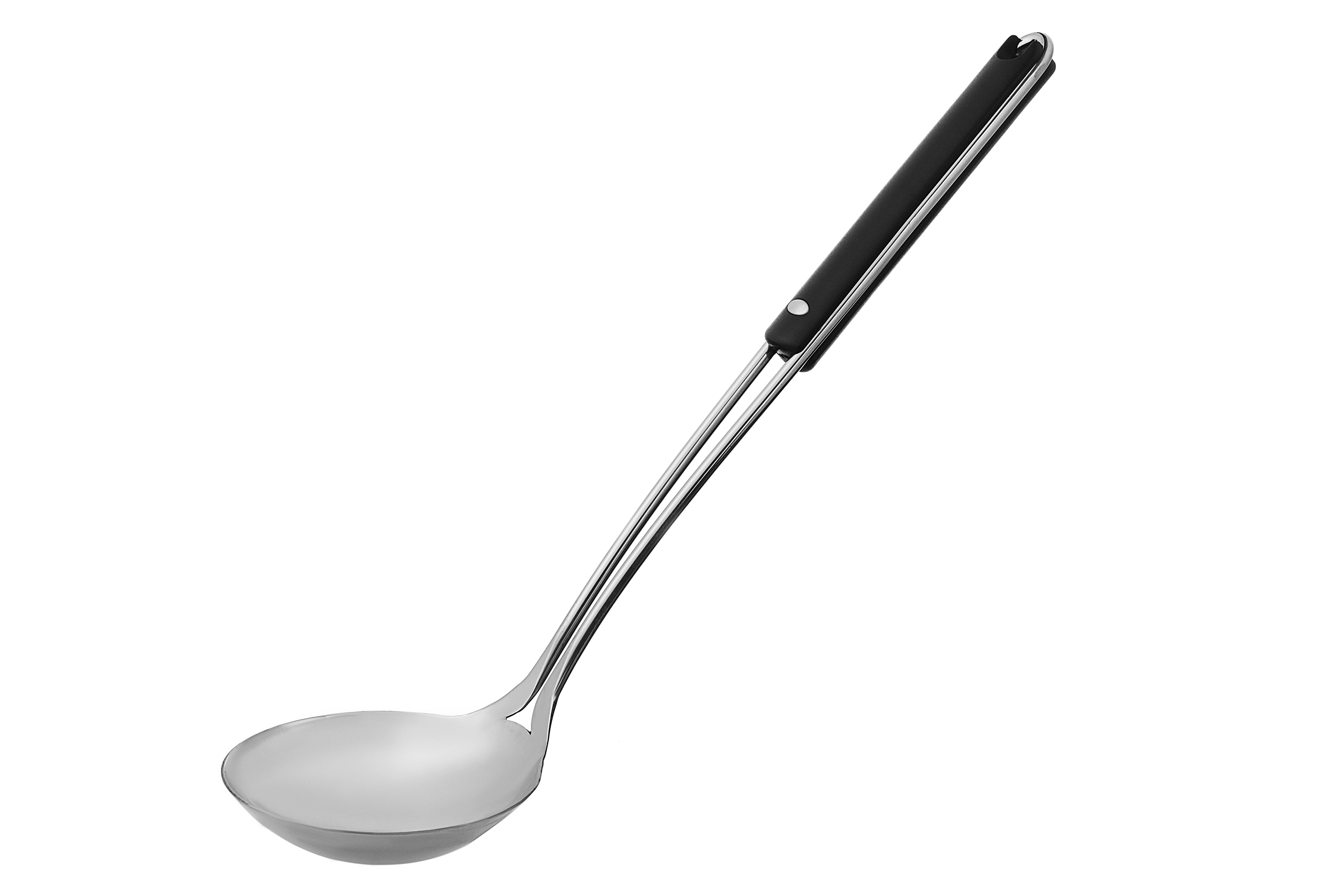 Основна частина ополоника зроблена з нержавіючої сталі, а ручка – з нейлону. Вона приємна на дотик та майже не нагрівається.