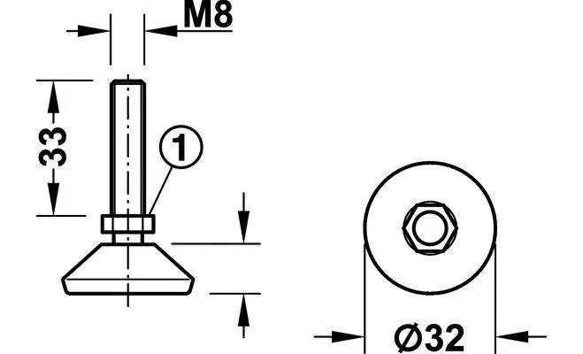 Опора-гвинт Hafele D-32 мм, M8x33 мм – це надійний меблевий елемент, що забезпечує стабільність конструкцій навіть на нерівних поверхнях. Завдяки кульовому шарніру опора може адаптуватися до нахилів підлоги, що робить її універсальним рішенням для різних меблевих виробів.