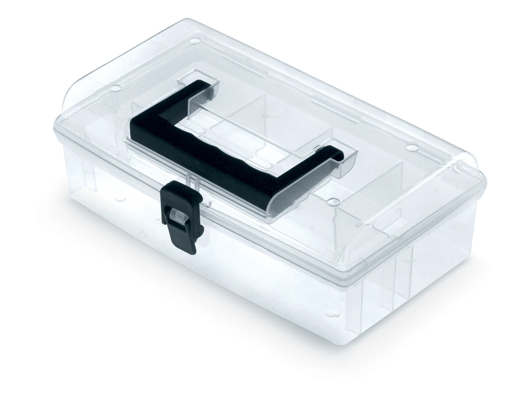 Простий та зручний органайзер (24.5x15x8.5 см) із 5 фіксованими відділеннями. Прозора кришка та корпус із поліпропілену забезпечують зручний огляд вмісту. Оснащений ергономічною ручкою в кришці та міцними засувками для надійного зберігання дрібних інструментів і аксесуарів.