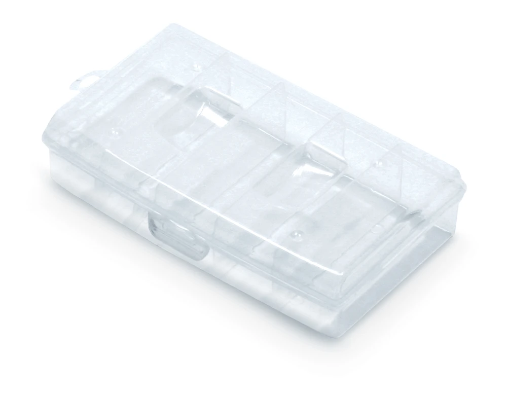 Компактний органайзер (19.8x11.7x4.5 см) з 5 фіксованими відділеннями, виготовлений із прозорого поліпропілену. Оснащений міцними засувками для надійного зберігання дрібних інструментів та аксесуарів.