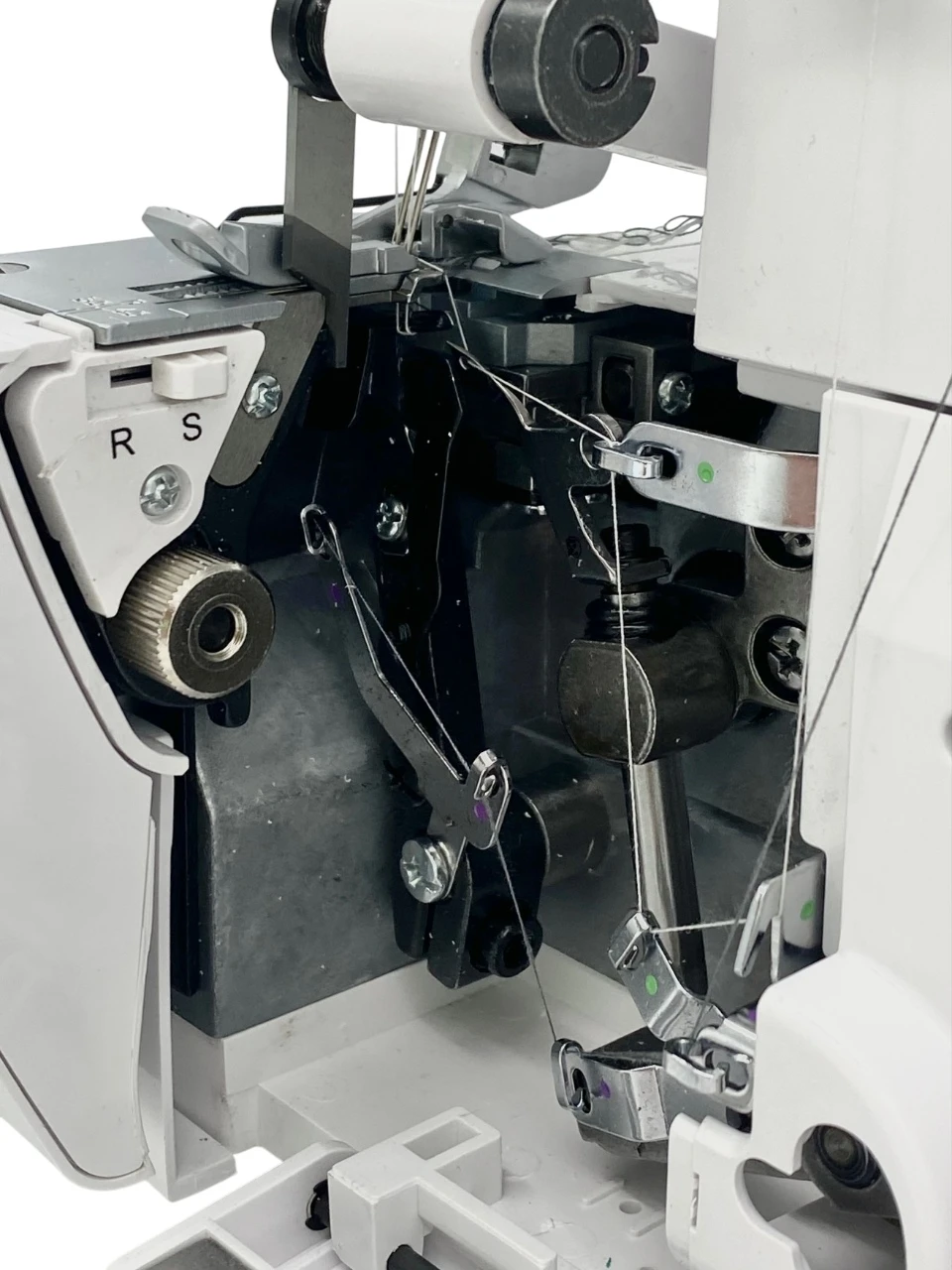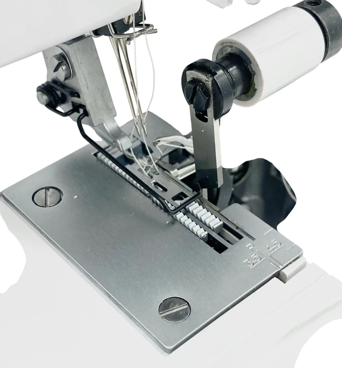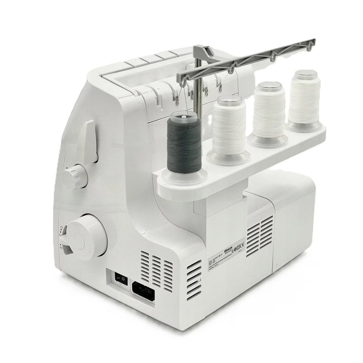 Оверлок Minerva Smartlock 350 – 2, 3, 4-х нитковий оверлок із рукавною платформою, що виконує 8 основних обметувальних швів. Підходить для всіх типів тканин – від тонких до джинса, завдяки регулюванню тиску лапки. Диференціальний транспортер забезпечує якісну обробку трикотажу. Оснащений сучасною системою прямих ниткопровідників, спрощеною заправкою ниток з колірними мітками, підказками для легкої заправки та можливістю відключення ножа.