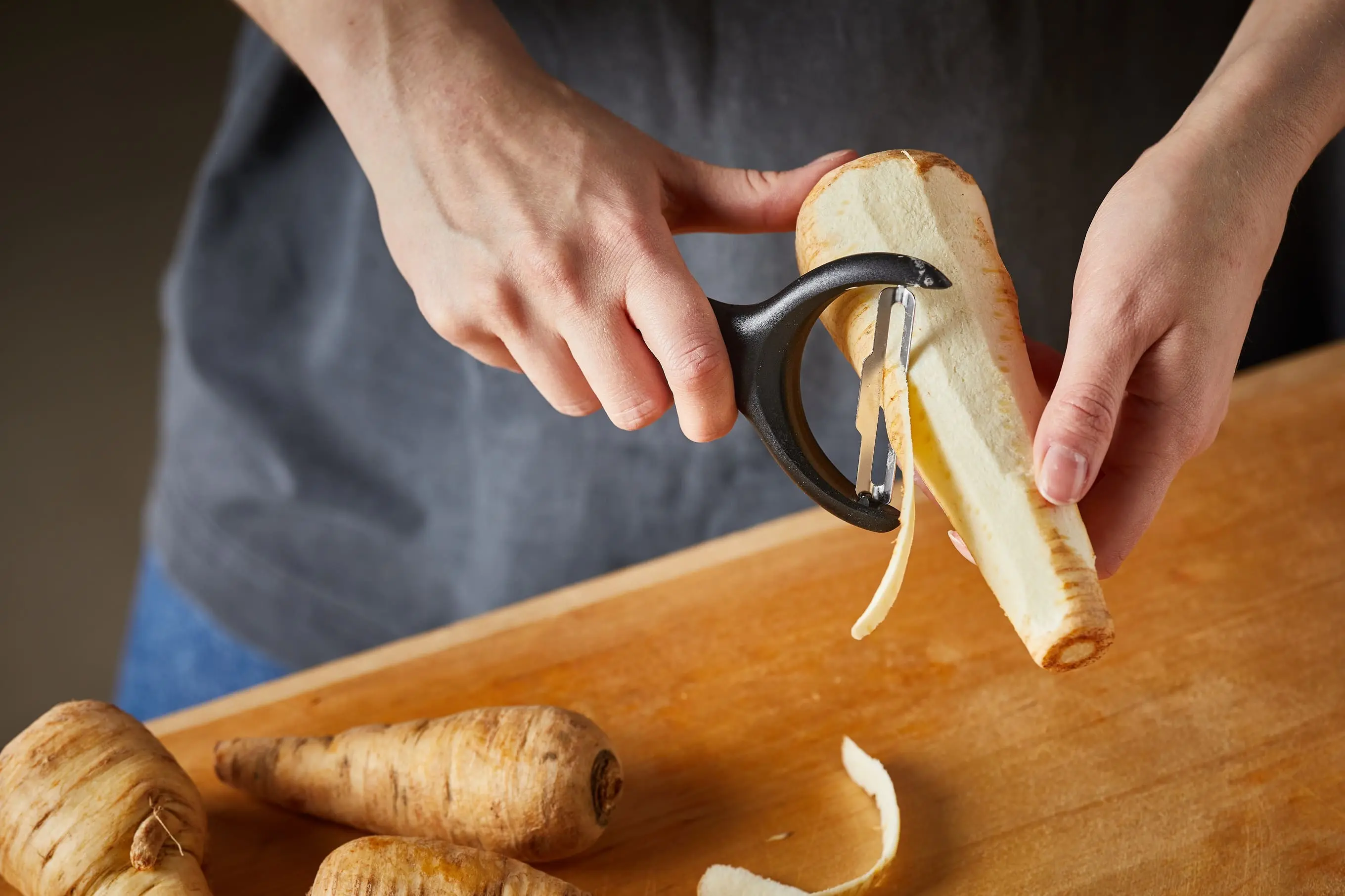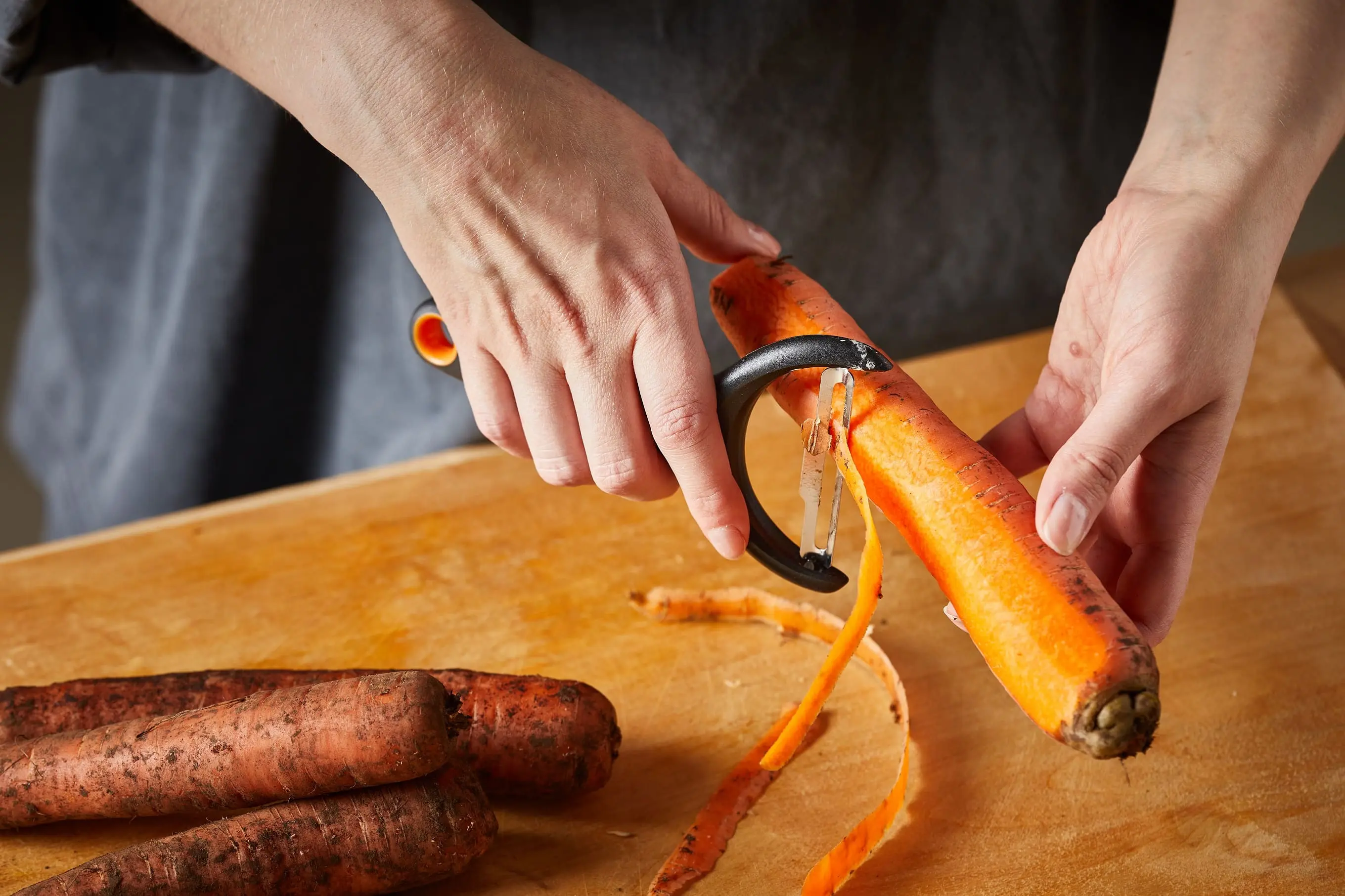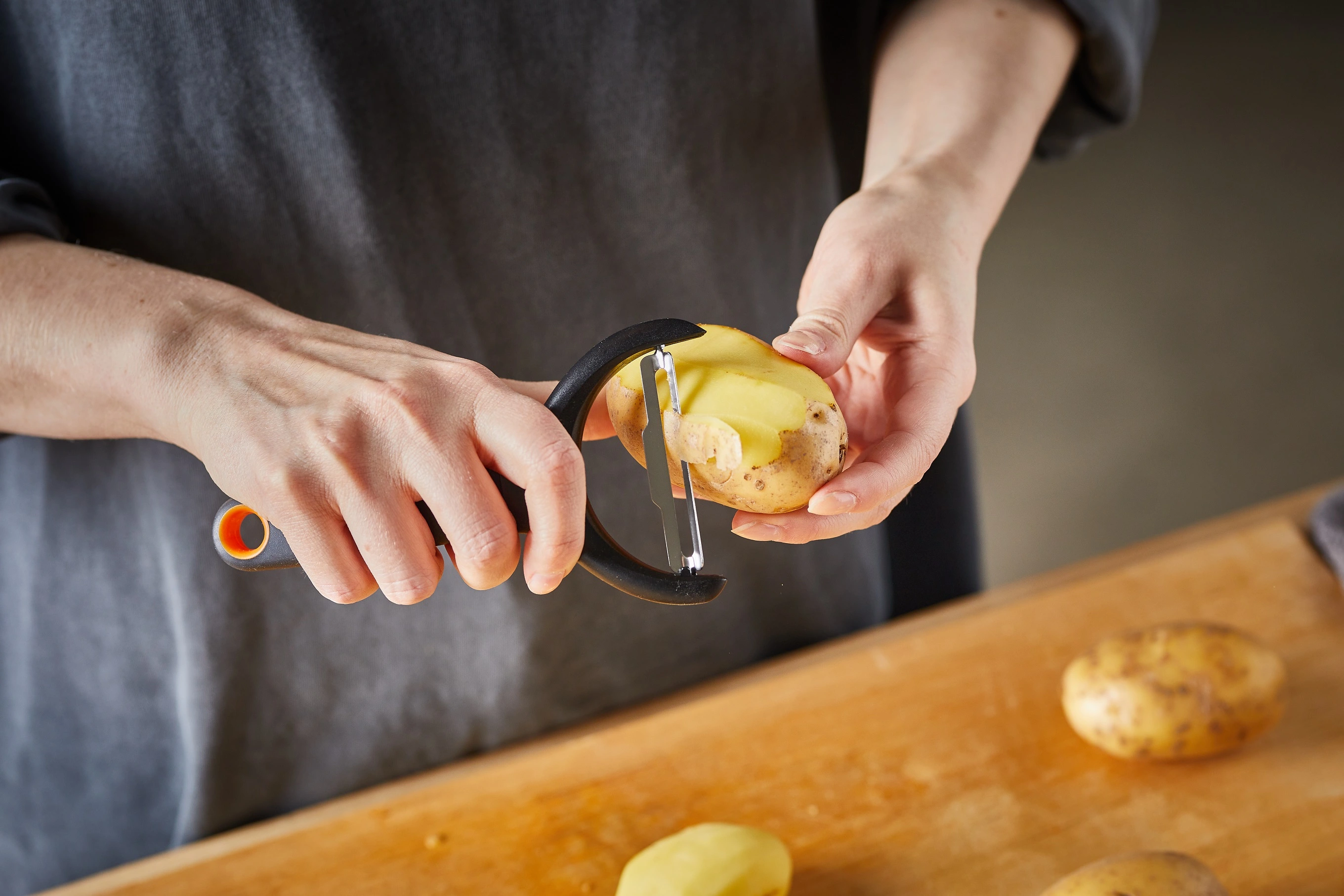 Ніж для чищення овочів з рухомим лезом (Y форма) Fiskars Functional Form. Матеріал леза - японська нержавіюча сталь.