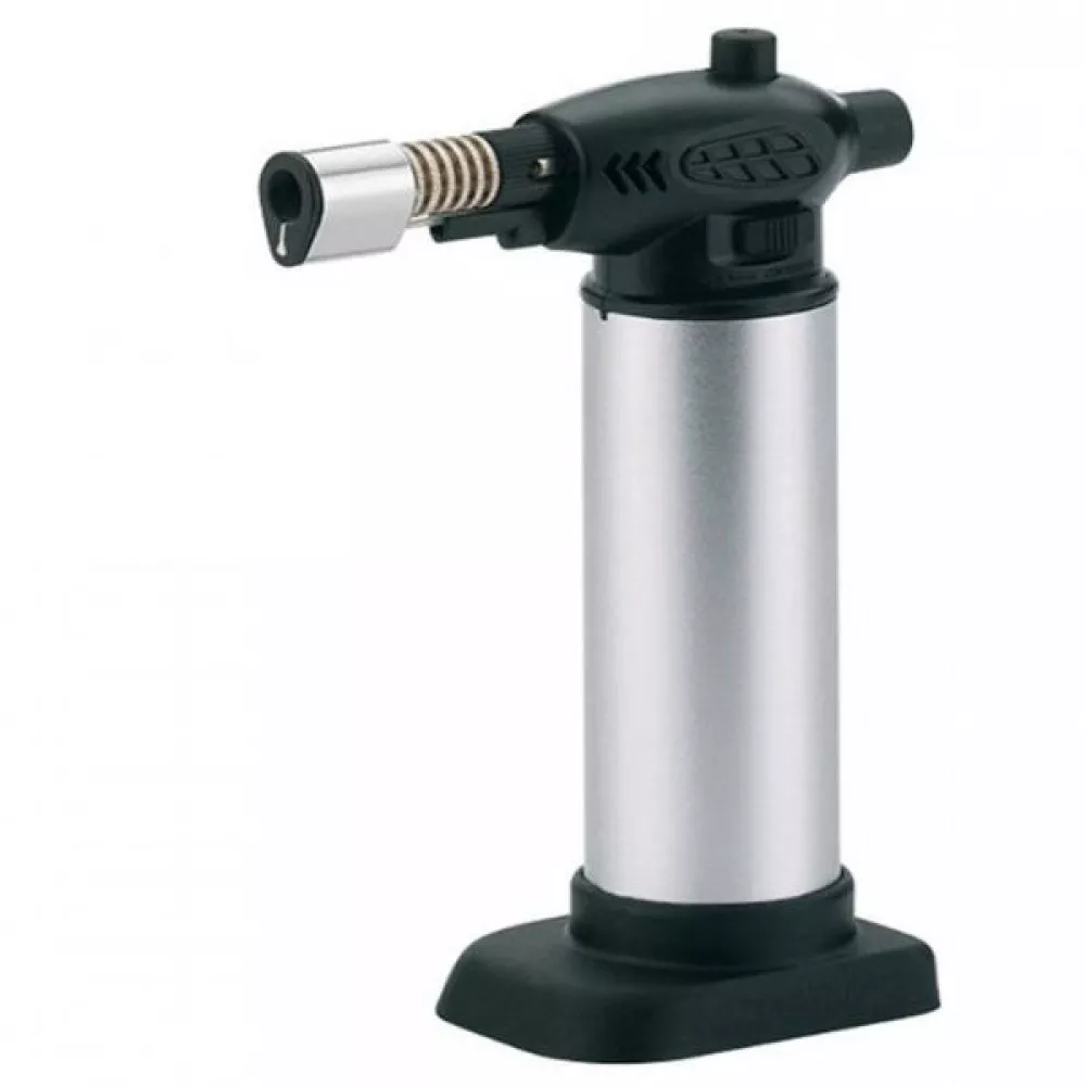 Пальник компактний (розмір 16 см x 11 см x 5 см). Завдяки п'єзоелементу, підпал відбувається автоматично шляхом простого натискання клавіші. Інтенсивність і довжину полум'я можна легко регулювати, також присутній запобіжник. Аксесуар відрізняється стильним дизайном і зручним виконанням, за своєю формою нагадує пістолет з підставкою для встановлення інструменту у вертикальне положення. Для виготовлення пальника використовують якісний метал.