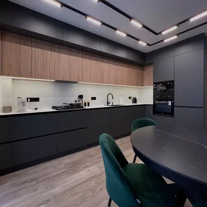 - Soft Touch покриття, що окрім сучасного матового також має стійку до подряпин структуру та не залишає по собі плями та відбитки, що так важливо для кухонних фасадів;