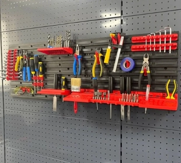 Підвісна панель Kistenberg KS_kit14 з гачками та полицями – ідеальне рішення для організації інструментів у майстерні, гаражі чи на складі. Комплект містить 2 міцні панелі (57.6×1.8×39 см), 20 гачків та 3 полиці для зручного зберігання.