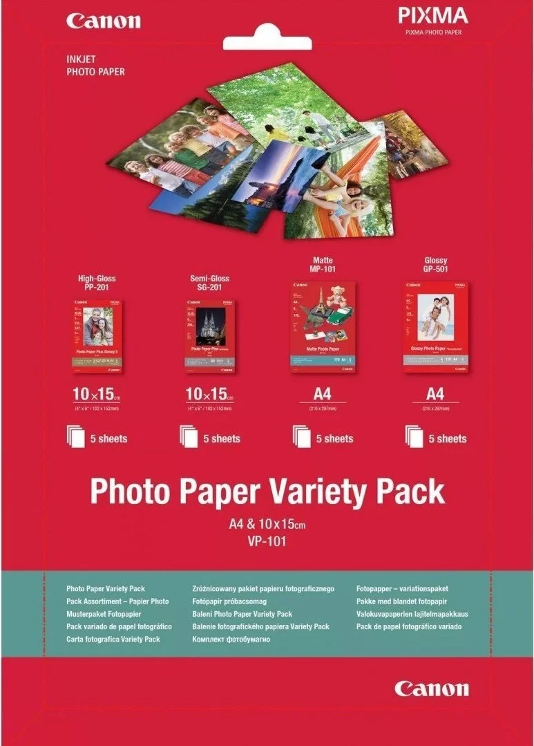 Canon VARIETY PACK S+ A4 — це універсальний набір фотопаперу формату A4 для якісного друку вдома чи в офісі. В одному пакуванні ви отримаєте кілька типів паперу для різних потреб: від глянцевих фото до матових зображень. Підходить для струминних принтерів Canon та забезпечує чіткі кольори й деталізацію.