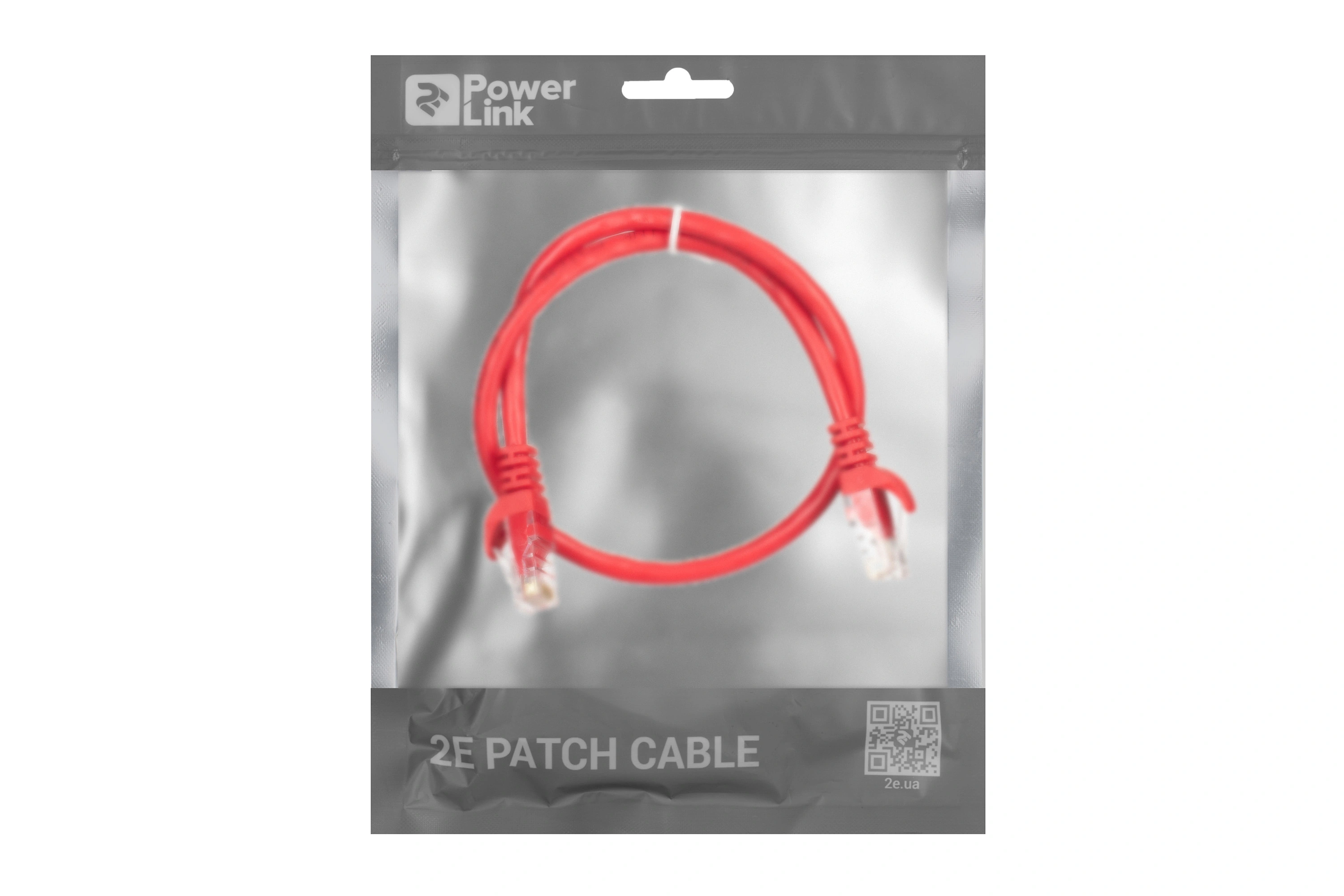 Патч-корд 2E САТ 6, UTP, 0.50м, 26AWG, RJ45, 7/0.16, Cu, PVC, червоний