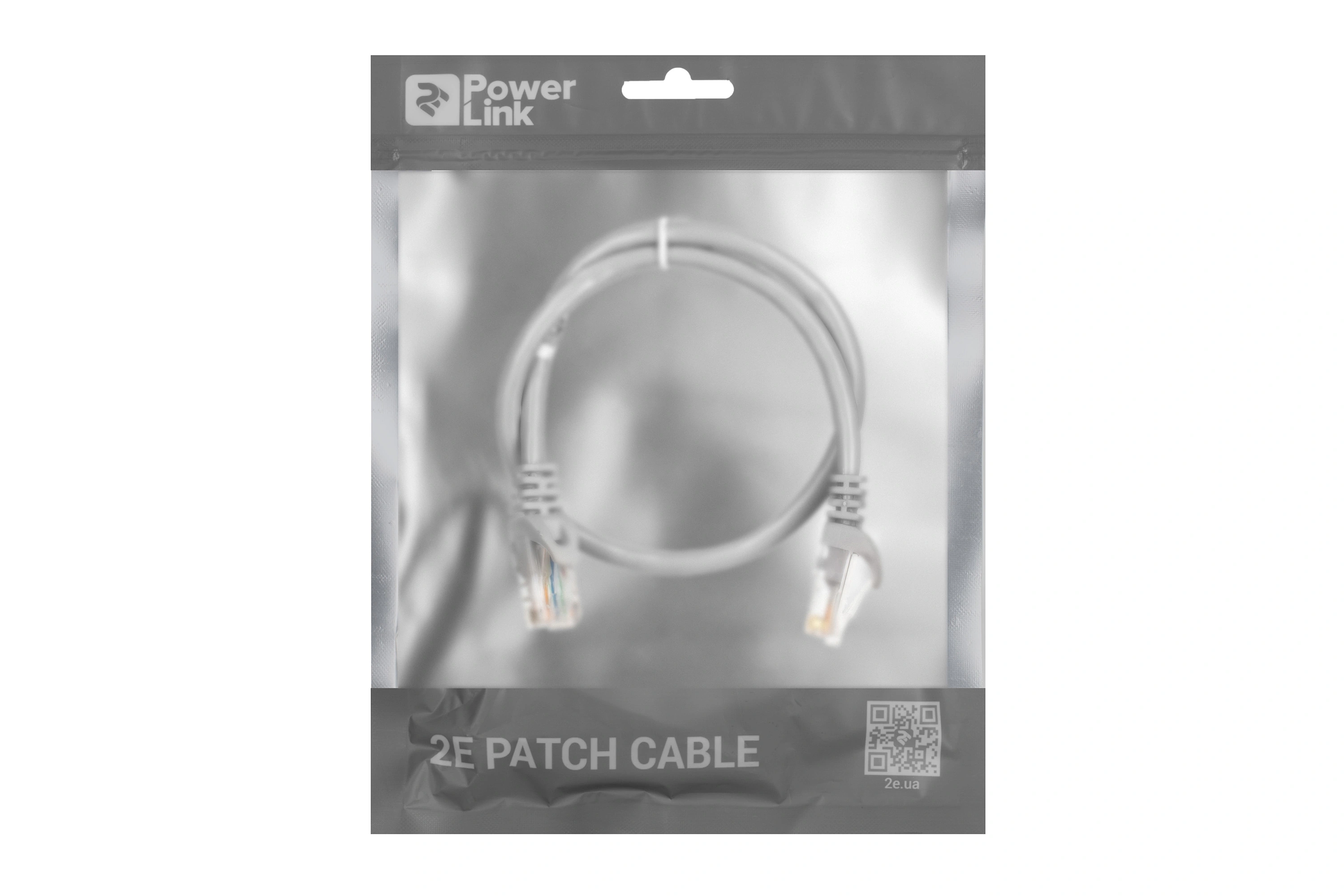 Патч-корд 2E САТ 6, UTP, 0.50м, 26AWG, RJ45, 7/0.16, Cu, PVC, сірий
