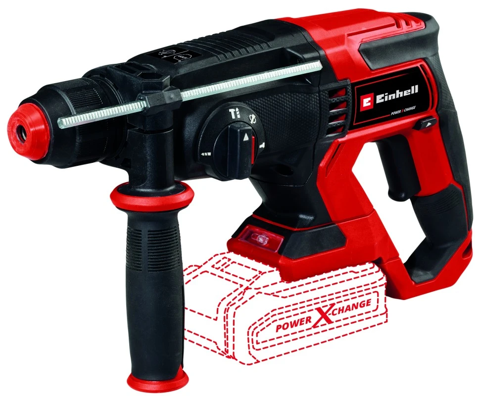 Акумуляторний перфоратор лінійки Power X-Change system Einhell TE-HD 18/20 Li - Solo серії Expert має чотири функції - ударного свердління, свердління та довбання з фіксацією долота та без неї. Пневматичний ударний механізм працює з частотою до 4750 ударів в хвилину та потужністю 1,8 джоуля.
