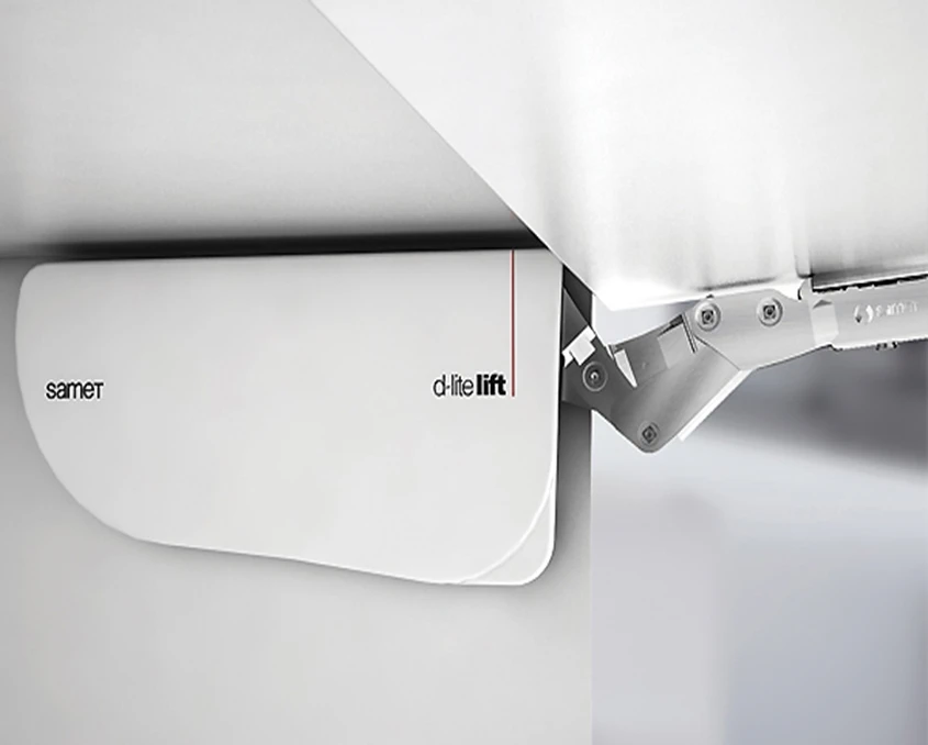 SAMET разработал этот подъемный механизм с учетом потребностей современных пользователей, которые ценят эргономику и функциональность. Благодаря газовым амортизаторам и регулируемому углу открытия шкафа, подъемный механизм обеспечивает плавное открытие и закрытие, а также возможность удобного доступа к содержимому. выбора различных размеров и конфигураций, позволяющих использовать его для разных типов мебели.