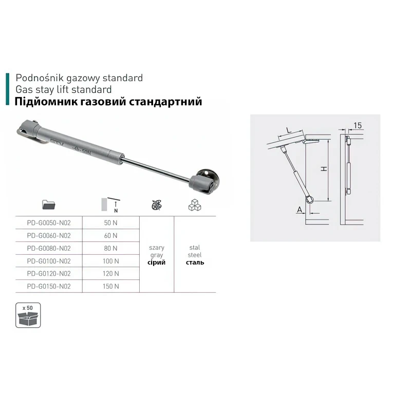 Подъемник газовый GTV PD-G0060-N02 60N Серый