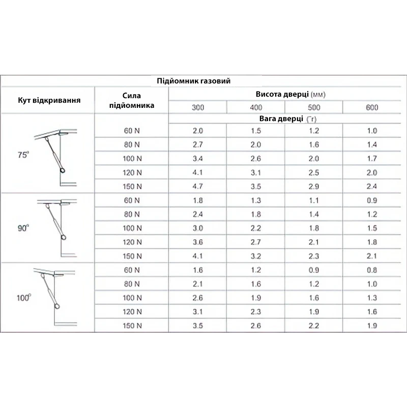 Подъемник газовый GTV PD-GAM080-N10 с доводчиком GАМ 80N Белый
