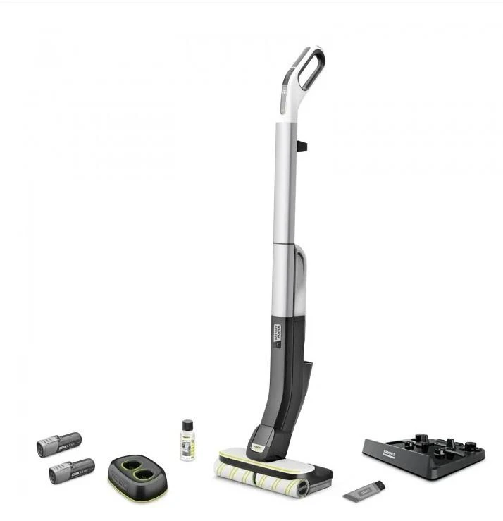 Для легкого, швидкого та ефективного прибирання підлогомийна машина Karcher FC 4-4 в один прийом видаляє як сухі, так і вологі забруднення. Поставляється зі змінними акумуляторами та зарядним пристроєм