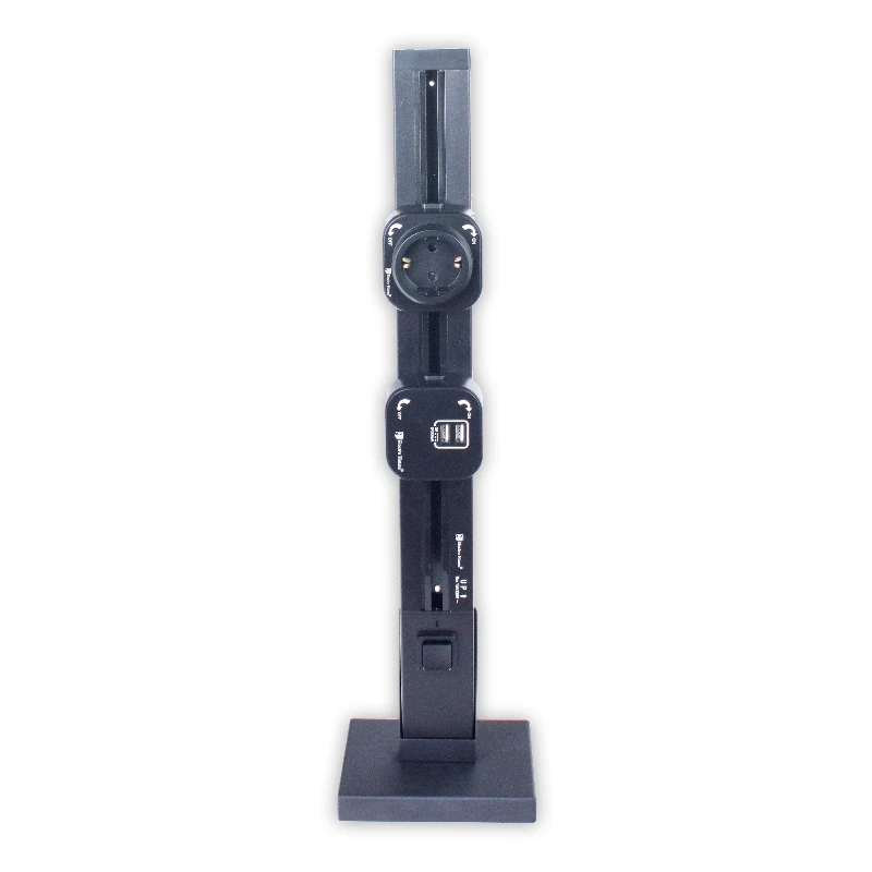 Благодаря универсальности конструкции, напольная стойка легко совместима с трековыми рельсами любой длины, что позволяет вам создавать индивидуальные электрические системы в любом помещении. Вы можете закрепить ее к полу для дополнительной стойкости или использовать свободно, что делает установку максимально удобной. Стойка оснащена крепежными отверстиями, позволяющими надежно фиксировать трековую рейку в рабочем положении, а также кабельным вводом для простого подключения к электросети.