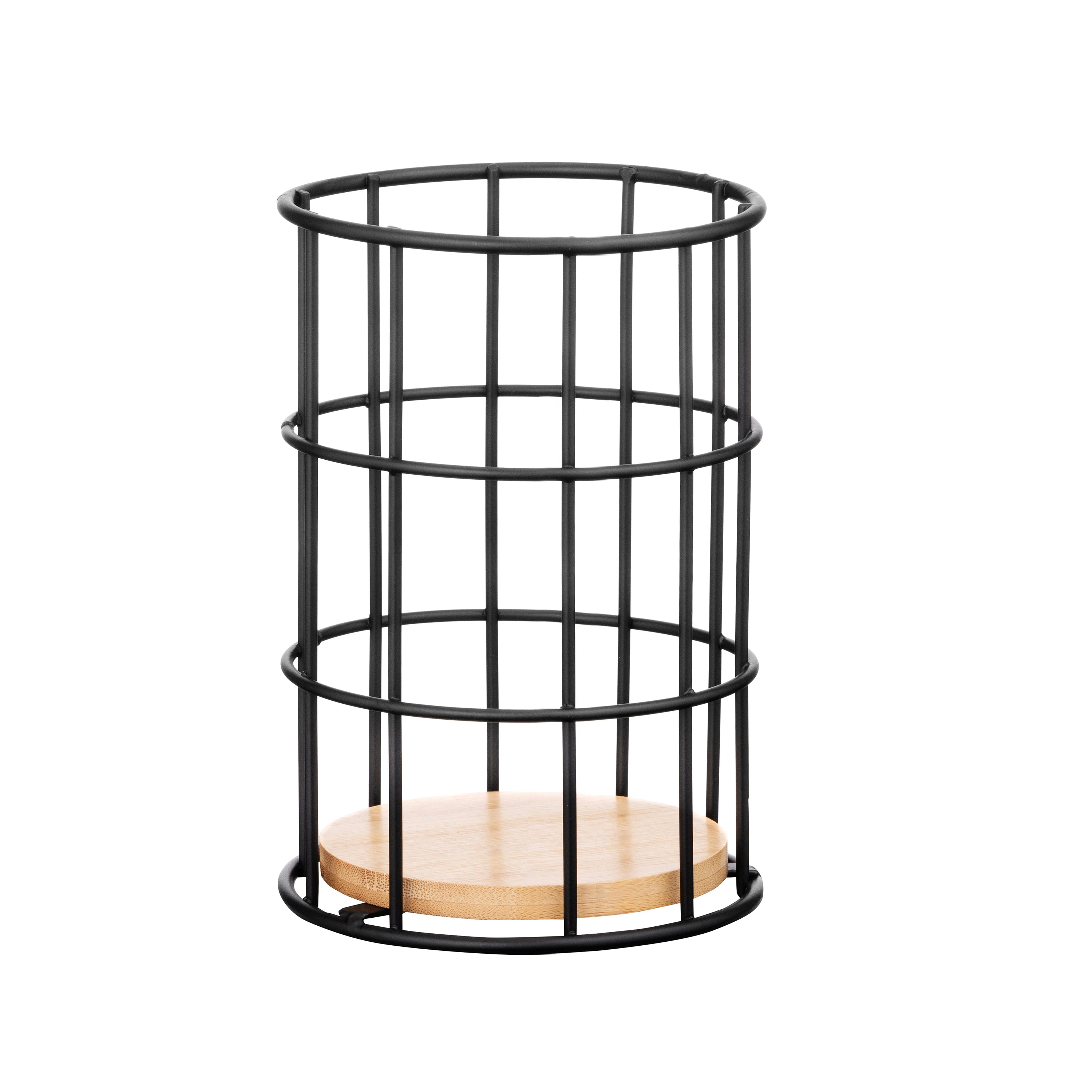 Підставка для столових приборів Ardesto Midori 11х11х17см, метал, бамбук, чорний