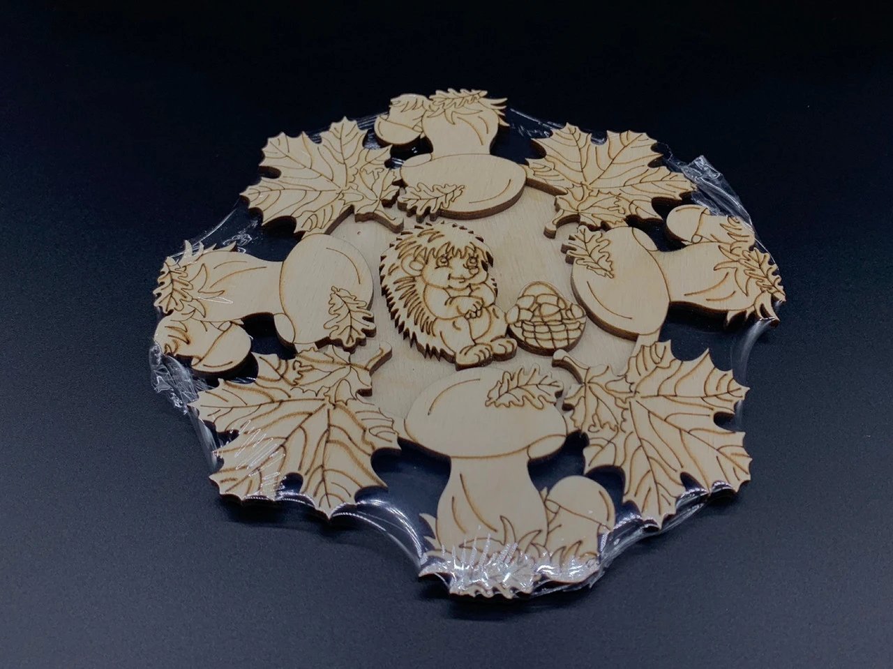 Подставка под горячую посуду из дерева, 17см, Ежик с грибами