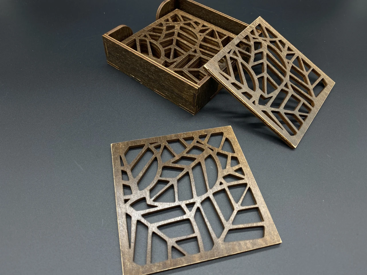 Костер под горячую посуду из дерева в коробке, 10х11см, 6шт, тонированные