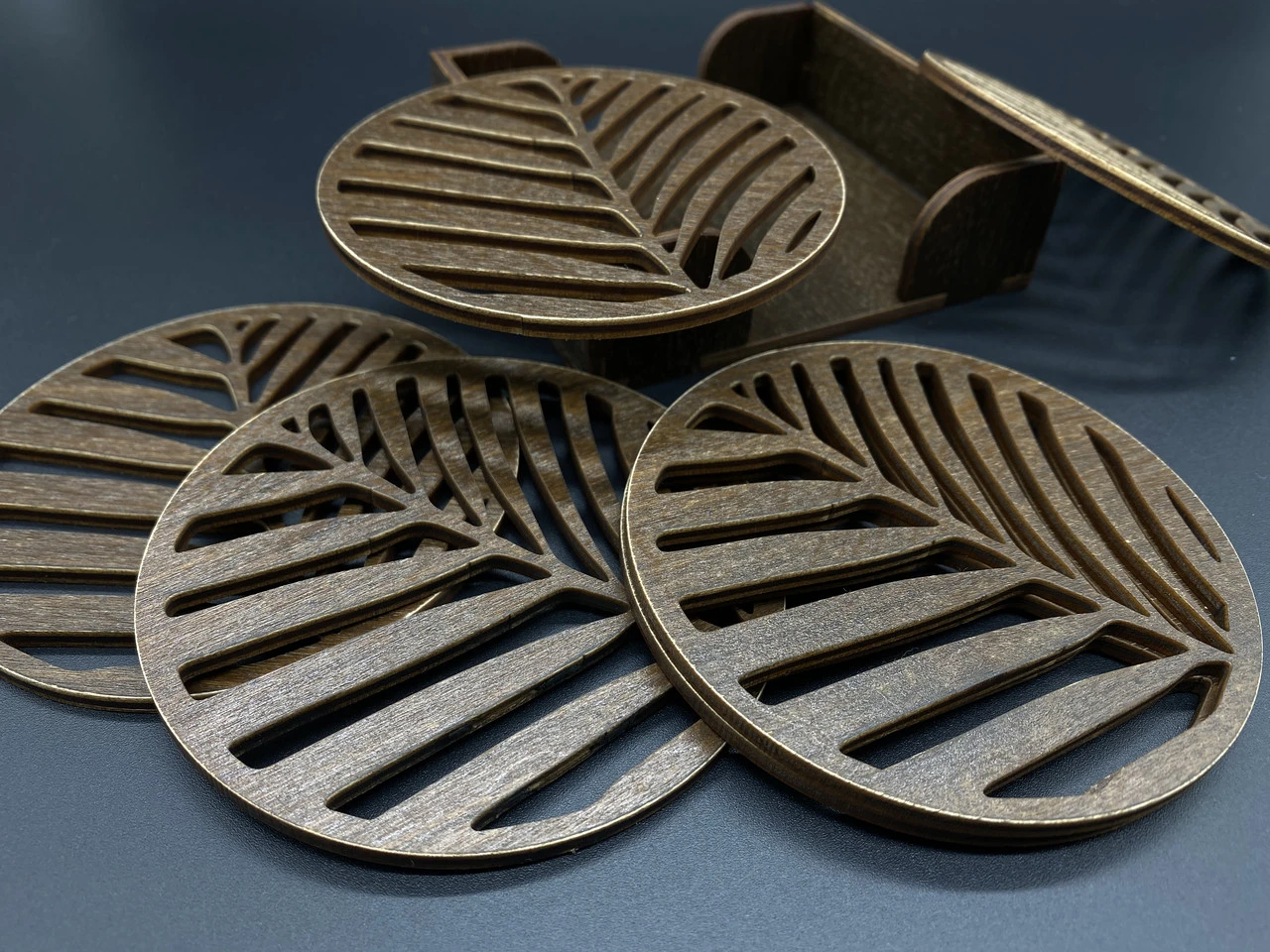 Костер под горячую посуду из дерева в коробке, 10х11см, 6шт, тонированные