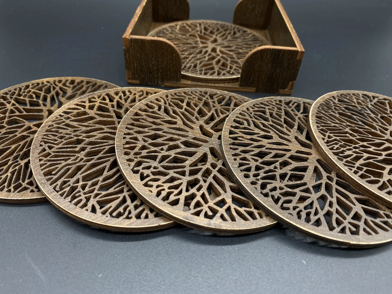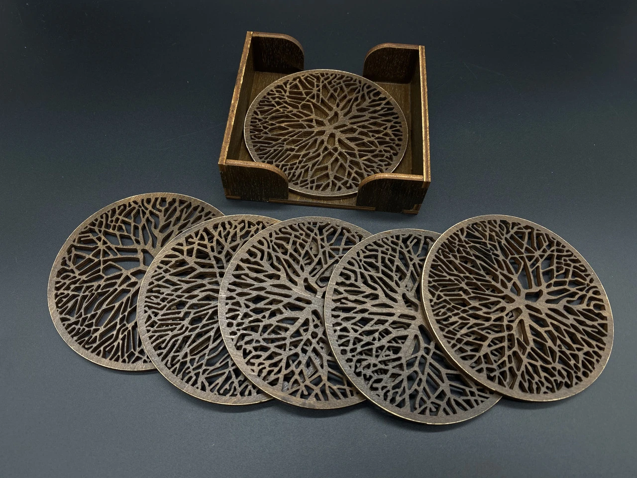 Костер под горячую посуду из дерева в коробке, 10х11см, 6шт, тонированные