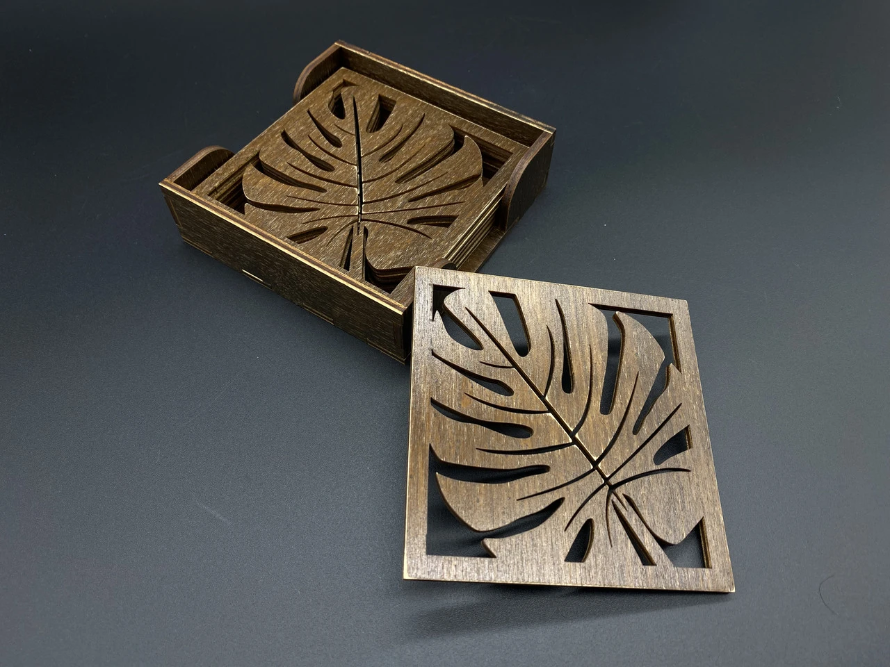 Костер под горячую посуду из дерева в коробке, 10х11см, 6шт, тонированные