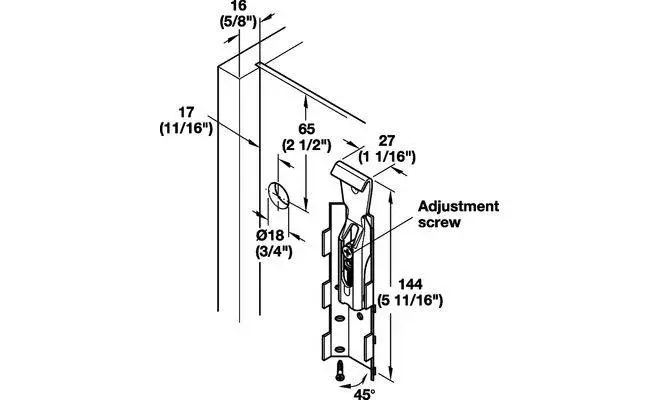 Підвіс для шаф з невидимим кріпленням за задньою стінкою шафи, виготовлений з оцинкованої сталі. Підвіс має здатність до регулювання після монтажу за допомогою регулювальних гвинтів спереду. Несуча здатність підвісу -130 кг на пару, монтаж виконується шляхом прикручування з права і з ліва. Підвіс для шаф для кріплення зліва або з права.