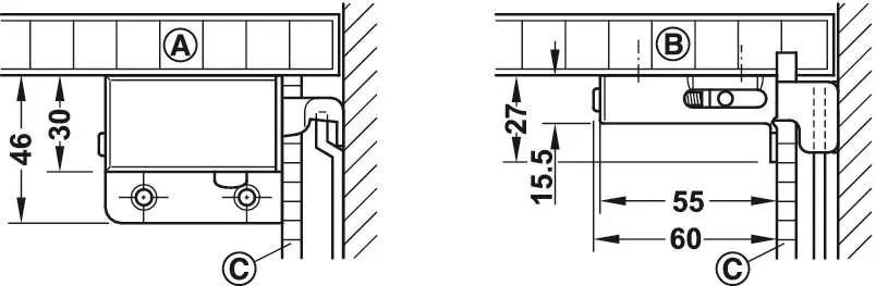Підвіс для шаф виготовлений з нікельованої сталі, має здатність до регулювання по висоті 16 мм, регулювання глибини 15 мм та бічного регулювання 10 мм. Максимальне навантаження на підвіси - 100 кг на пару. Підвіс для шаф для лівостороннього кріплення.