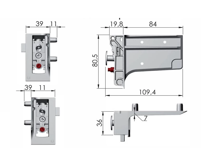 Подвес мебельный Italiana Ferramenta с регулированием Libra H7 под запрессовку для планки правый Цинк