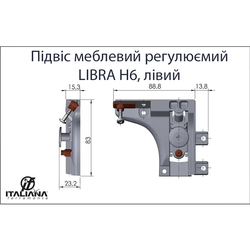 Подвес регулируемый Левый Italiana Ferramenta Libra H6 (до 240кг на пару)