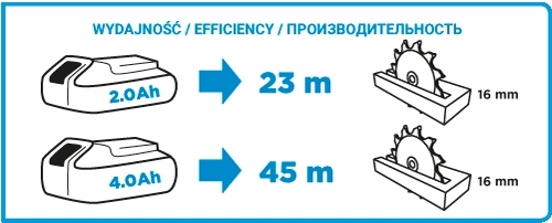 Дискова пилка GRAPHITE, сумісна з акумуляторами 18 В, Li-Ion, GRAPHITE Energy+. Пилка дозволяє виконувати різання під кутом у діапазоні від 0° до 45°. Максимальна товщина розпилюваного матеріалу складає 48 мм. Регулювання кута і глибини різання не вимагає використання інструментів. Пилка сумісна з різальними дисками зовнішнім діаметром 150 мм і діаметром отвору 10 мм. Швидкість обертання диска на яловому ході складає 4200 об./хв. Пилку обладнано ручкою з блокуванням від випадкового ввімкнення, яка вкрита протиковзаючим пластиком, завдяки якому робота нею є зручною та безпечною. Опірна рамка та верхній кожух виготовлені з міцного сплаву алюмінію. Пилка постачається у комплекті з напрямною для поздовжнього різання та торцевим ключем.