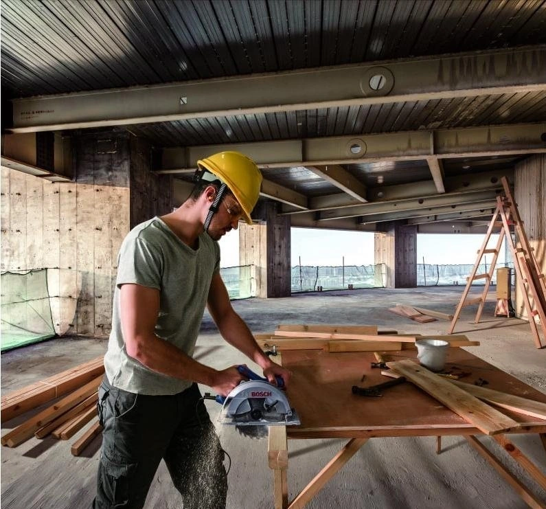 Циркулярна пилка Bosch GKS 140 зі швидкістю обертання диска 6200 об/хв забезпечує рівний різ і практично не потребує зусиль. За рахунок продуманої конструкції інструмент зручний у використанні.