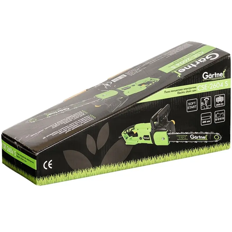 Пила ланцюгова електрична Gartner CSE-2604 S - надійний інструмент для обрізки гілок, розпилу деревини та заготівлі дров у побутових умовах. Оснащена пильною гарнітурою з автоматичним змащенням ланцюга, приводною шестернею та інерційним гальмом, що забезпечує безпечну зупинку ланцюга при віддачі.