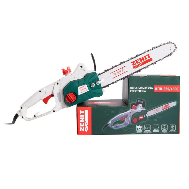 Пила ланцюгова електрична ЗЕНИТ ЦПЛ-355/1300 належить до класу ручних механізованих інструментів. Модель призначена для побутового використання: пиляння деревини, обрізки гілок, заготовки дров та інших видів робіт.