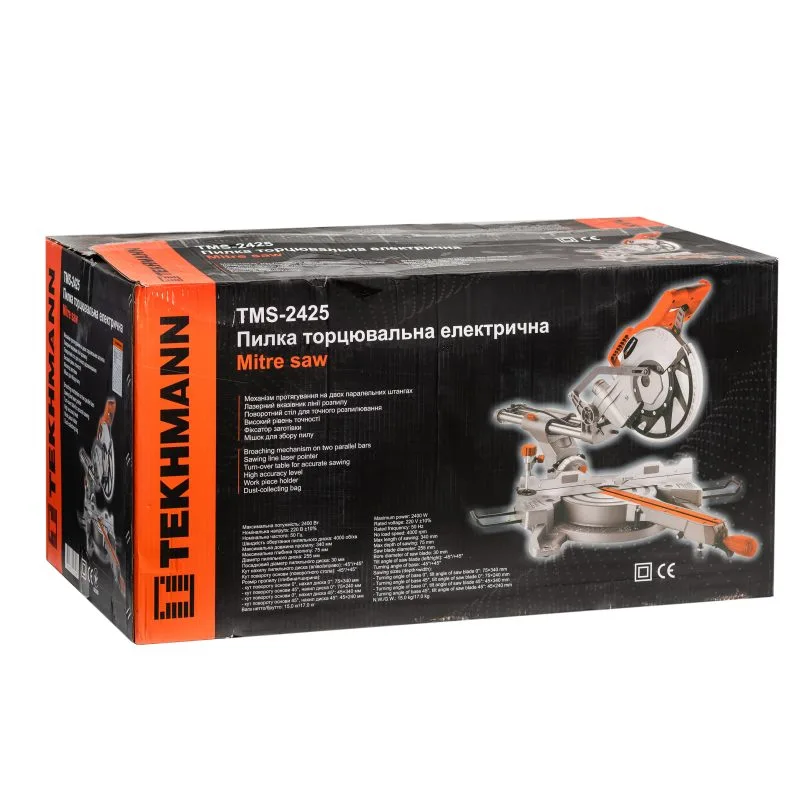 Пила торцювальна Tekhmann TMS-2425 з протяжкою 2400Вт диск 255мм довжина різу 340мм 15кг
