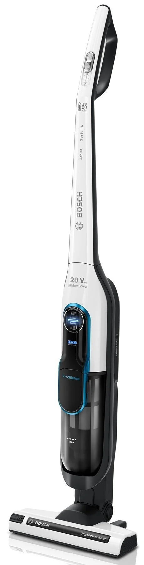 Новий акумуляторний пилосос від Bosch серії Athlet ProSilence. Тихий та ефективний в прибиранні.Технологія Bosch Lithium-Ion. Довговічний та потужний акумулятор з часом роботи на одному заряді до 60 хв. Тихий в роботі завдяки спеціальній конструкції, що знижує рівень шуму. Вбудовані сенсори на постійній основі контролюють продуктивність пилососу. Коли сила повітряного потоку знижується, LED індикатор просигналізує про необхідність очищення фільтру. Досить тричі прокрутити важіль за годинниковою стрілкою, дістати та висипати пил.
