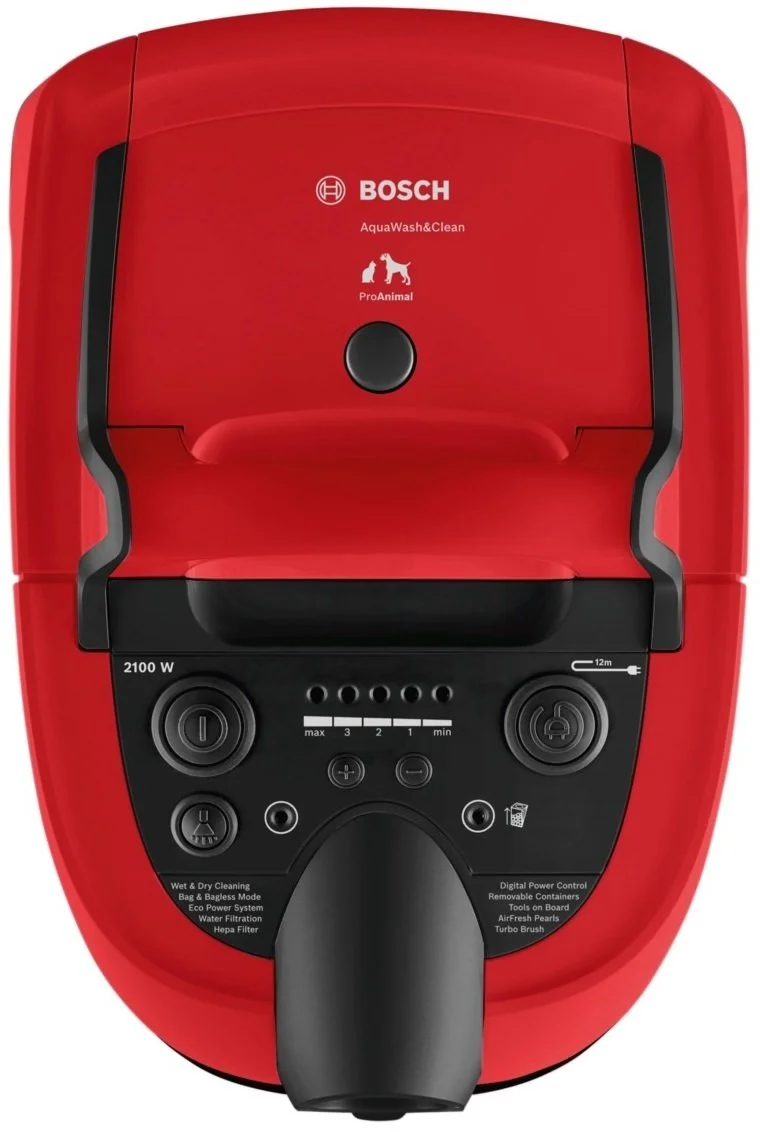Пилосос Bosch миючий, 2100Вт, 2,5л, вода -5л, НЕРА13, турбощітка, червоний