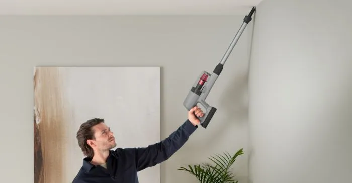 Пилосос Animal 700 Cordless для бездоганного прибирання на будь-якій поверхні. Ідеально підходить для збирання шерсті домашніх тварин і на 60 % складається з пластмаси, придатної для повторної переробки. Легкий (усього 2,2 кг) і потужний бездротовий пилосос значно полегшує процес прибирання. Ергономічна й компактна конструкція дає змогу маневрувати й прибирати хоч на підлозі, хоч на стелі. Висока потужність всмоктування й високооборотний двигун, який швидко та легко очищає підлогу від пилу.
