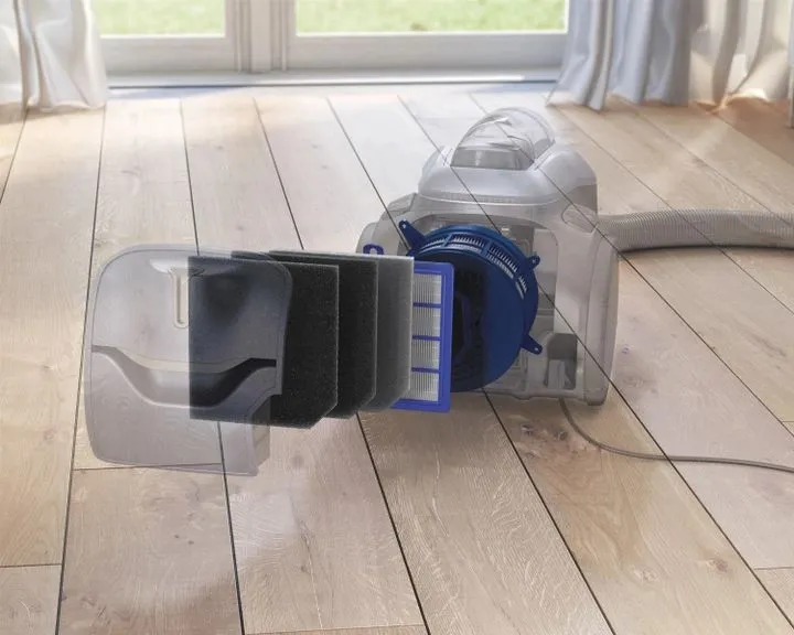 Повністю герметичний корпус пилососа завдяки системі PureFlow — це висока ефективність прибирання та чудова фільтрація без жодних зусиль. Революційний 3D-фільтр, дуже важливий елемент у 7-ступеневій системі фільтрації, забезпечує якісне прибирання та фільтрацію з мінімальними втратами потужності втягування. Завдяки 7-ступеневій системі фільтрації пилосос утримує всередині найдрібніші мікрочасточки пилу та алергенів, а до кімнати потрапляє виключно чисте повітря.